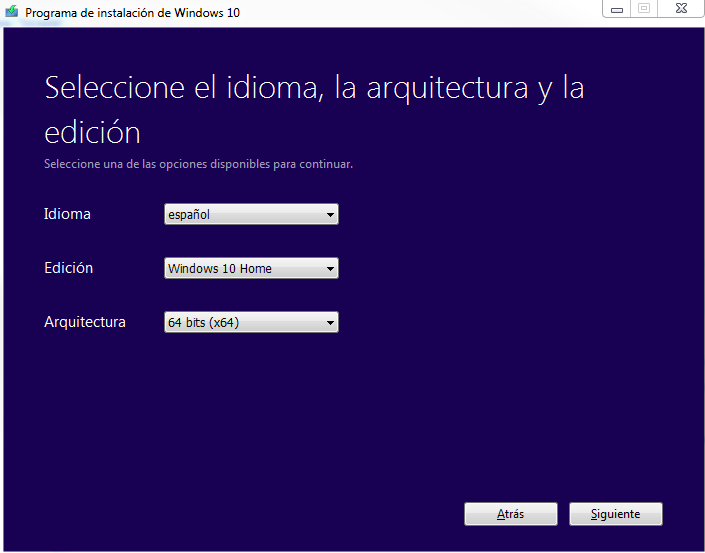 Para ello, podéis descargar un instalador desde este link. Los pasos son muy sencillos. Primer seleccionáis si queréis actualizar el equipo en el que os encontráis o si, por el contrario, queréis crear un medio de instalación para otro equipo. En mi caso, ya que no quiero actualizar el equipo en el que estoy, he seleccionado «Crear un medio de instalación para otro PC«. En el siguiente paso debemos indicar qué versión de Windows 10 queremos y si lo queremos de 32 o 64 bits. Una vez hayamos indicado esto, continuamos y nos dará la opción de crear una unidad flash USB o descargar una imagen ISO. A partir de ahí empezará a descargar Windows 10 y a crear el modo de instalación que hayamos elegido.